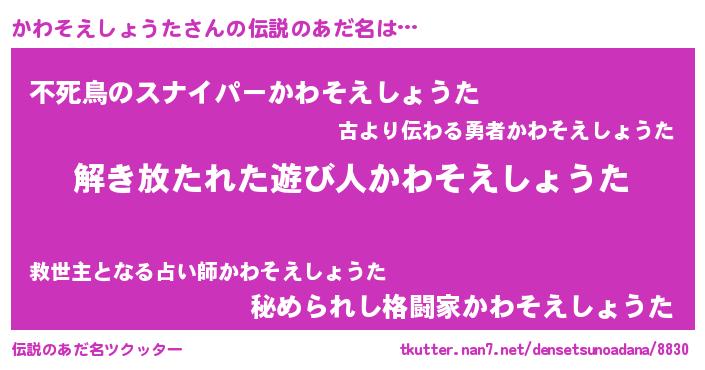 | 意味不明あだ名 | 『自称かわそえしょうた』 |