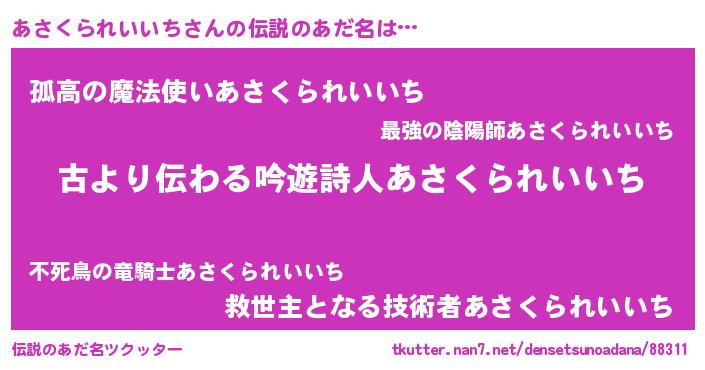 | ヘコむあだ名 | 『あさくられいいち(小並感)』『あさ太郎』 |