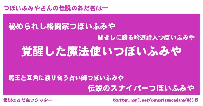| 胡散臭い通販商品みたいなあだ名 | 『全米が絶賛したサプリメント…その名も「つぼいふみや」』 |