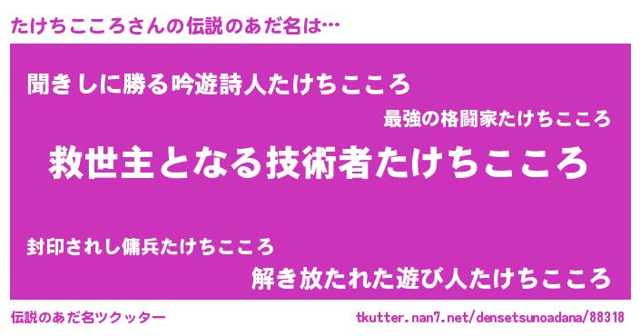 | ヘコむあだ名 | 『たけちこころ(小並感)』『たけお』 |
