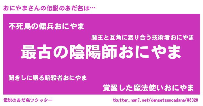 | 意味不明あだ名 | 『もやし科おにやま属』『自称おにやま』 |