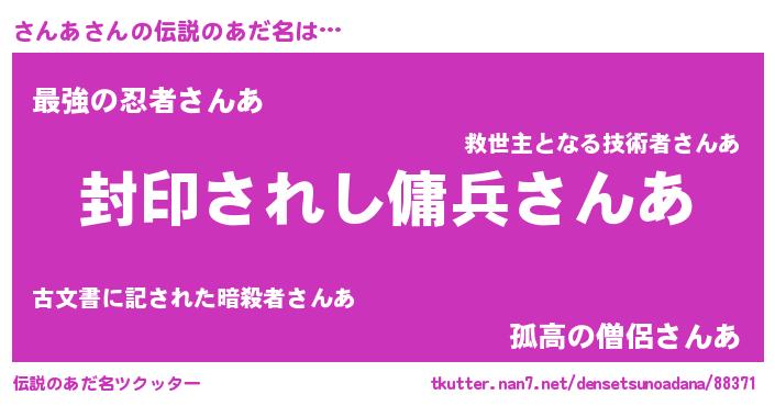 | ヒーロー風カッコイイあだ名 | 『究極戦士サンア』『スーパーサンア』 |