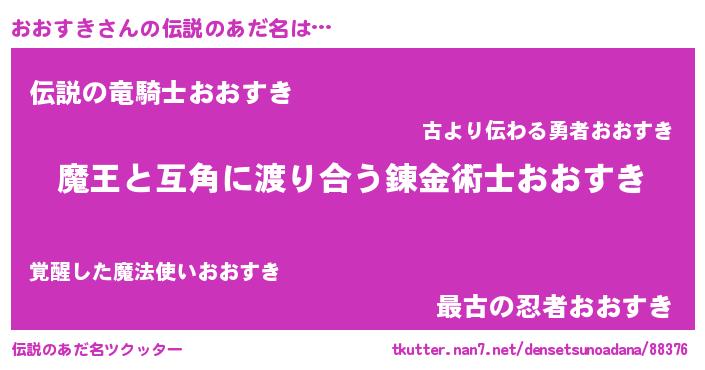 | ヒーロー風カッコイイあだ名 | 『慈愛の使者おおすき』『仮面オオダー』 |