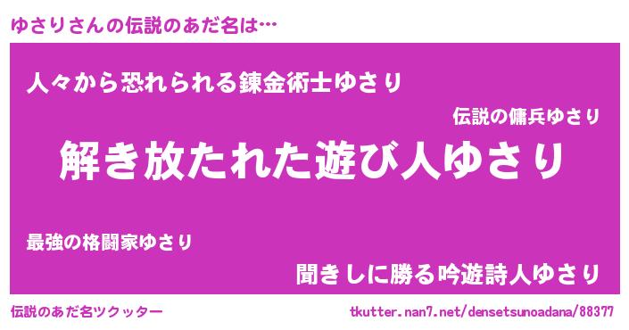 | ヒーロー風カッコイイあだ名 | 『銀牙騎士ユサ』『友情の使者ゆさり』 |
