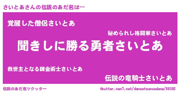 | ヘコむあだ名 | 『さいとあ(遠い目)』『さいっぺ』 |