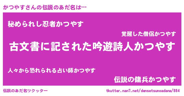 | 意味不明あだ名 | 『ニラ科かつやす属』『永久保存かつやす』 |