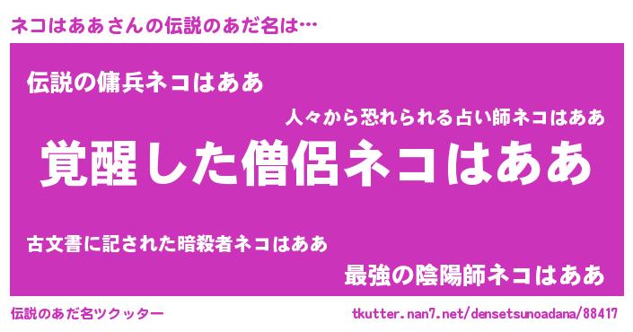 | 意味不明あだ名 | 『とにかく怪しいネコはああ』 |