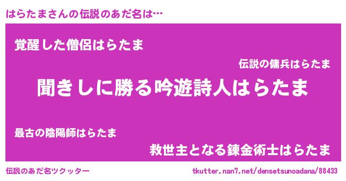 | 意味不明あだ名 | 『永久保存はらたま』『自称はらたま』 |