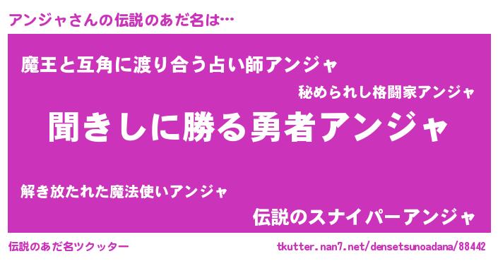 | 意味不明あだ名 | 『永久保存アンジャ』『自称アンジャ』 |
