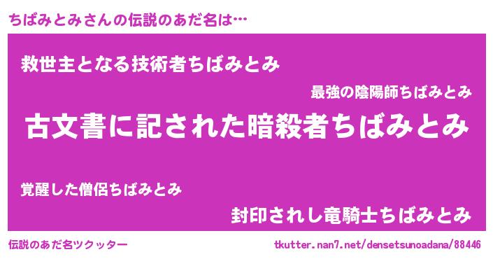 | 意味不明あだ名 | 『住所不定無職ちばみとみ(39歳)』 |