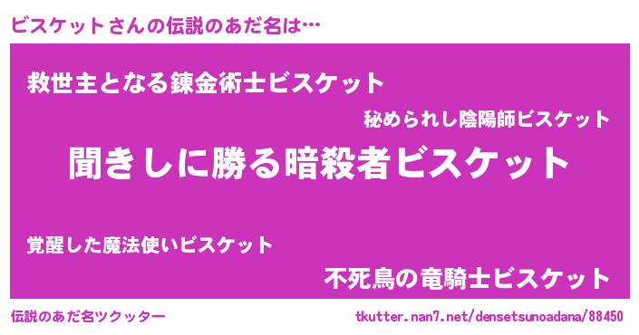 | 男性向けラノベタイトル風あだ名 | 『ビスケットスレイヤー』 |