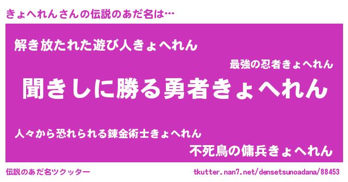 | 意味不明あだ名 | 『住所不定無職きょへれん(79歳)』 |