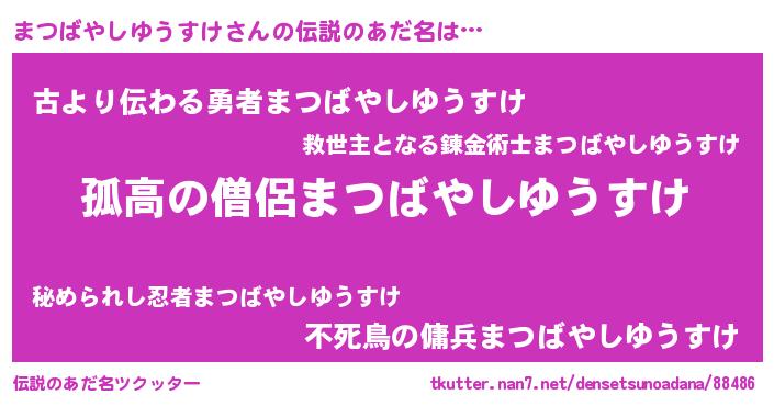 | 胡散臭い通販商品みたいなあだ名 | 『信頼と実績のネックレス…その名も「まつばやしゆうすけ」』 |