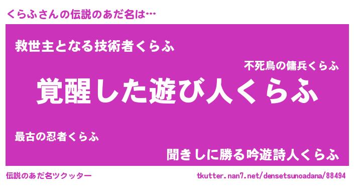 | 意味不明あだ名 | 『とにかく怪しいくらふ』『自称くらふ』 |