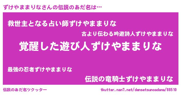 | 男性向けラノベタイトル風あだ名 | 『ずけやままりなの嫁は女の子じゃないと思った?』 |