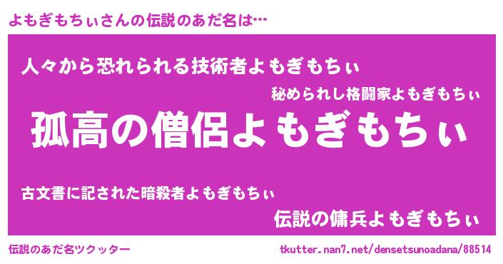 | 意味不明あだ名 | 『とにかく怪しいよもぎもちぃ』 |