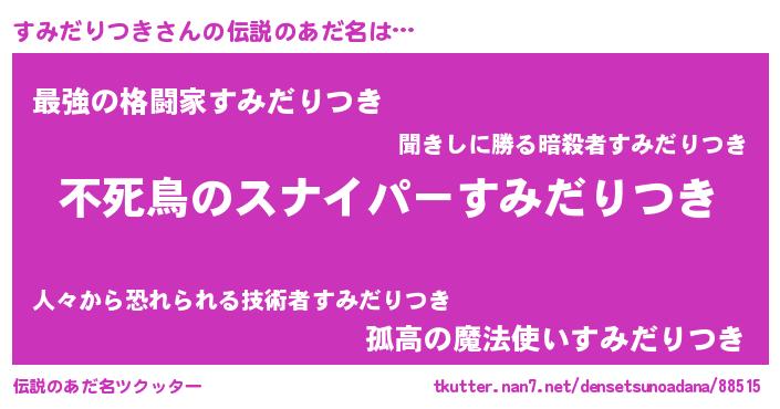 | 胡散臭い通販商品みたいなあだ名 | 『モテモテ間違いなし霊験あらたかなお札…その名も「すみだりつき」』 |