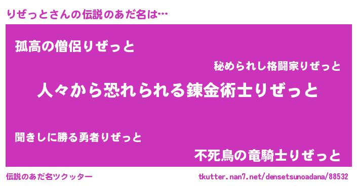 | ヒーロー風カッコイイあだ名 | 『正義の使者りぜっと』『仮面リゼダー』 |