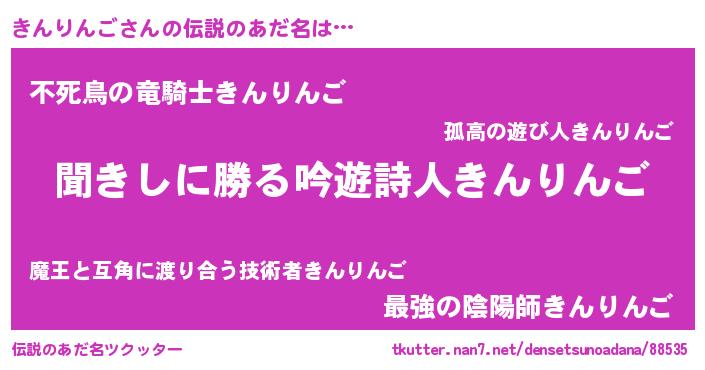 | 意味不明あだ名 | 『永久保存きんりんご』『自称きんりんご』 |