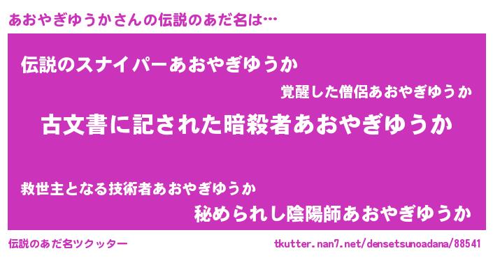 | 意味不明あだ名 | 『自称あおやぎゆうか』 |