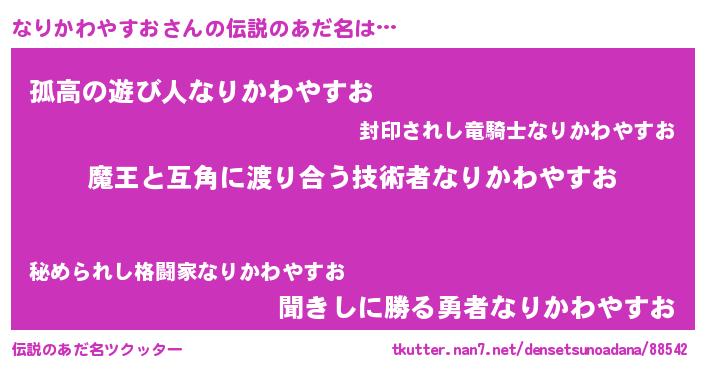 | ヘコむあだ名 | 『なりお』『なりかわやすお(小並感)』 |