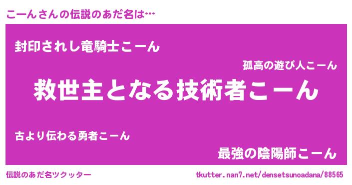 | 男性向けラノベタイトル風あだ名 | 『うちのこーんが世界を掌握している!』 |