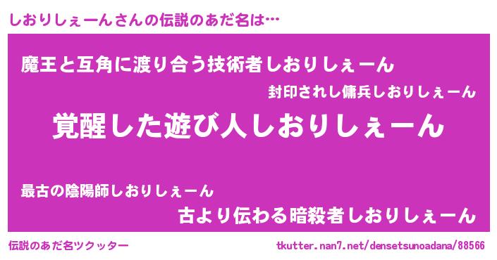 | ヒーロー風カッコイイあだ名 | 『最強戦士シオリシェーン』 |