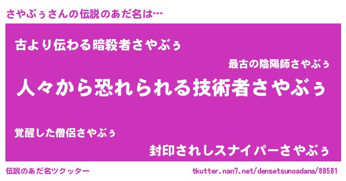 | ヒーロー風カッコイイあだ名 | 『正義の使者さやぶぅ』『ネオサヤブゥ』 |