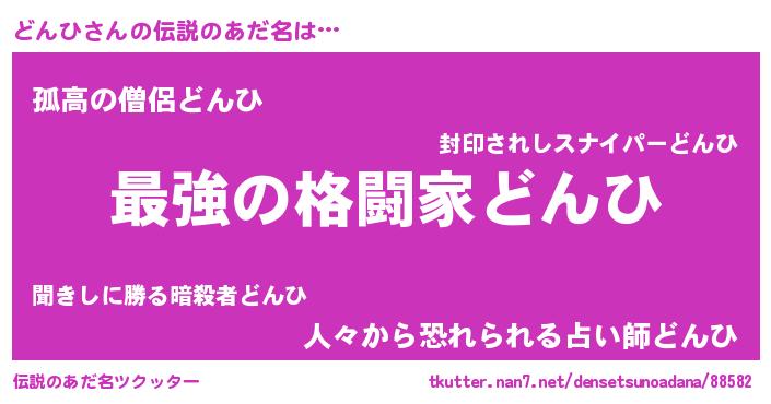 | 女子向けラノベタイトル風あだ名 | 『どんひの婚約者』『闇のどんひ』 |