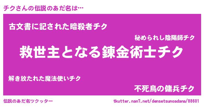 | ヒーロー風カッコイイあだ名 | 『慈愛の使者チク』『ネオチク』 |