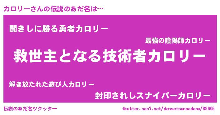 | 意味不明あだ名 | 『住所不定無職カロリー(2歳)』 |