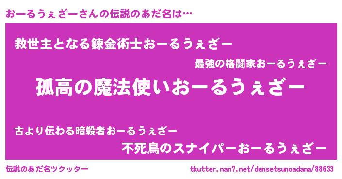 | 意味不明あだ名 | 『とにかく怪しいおーるうぇざー』 |