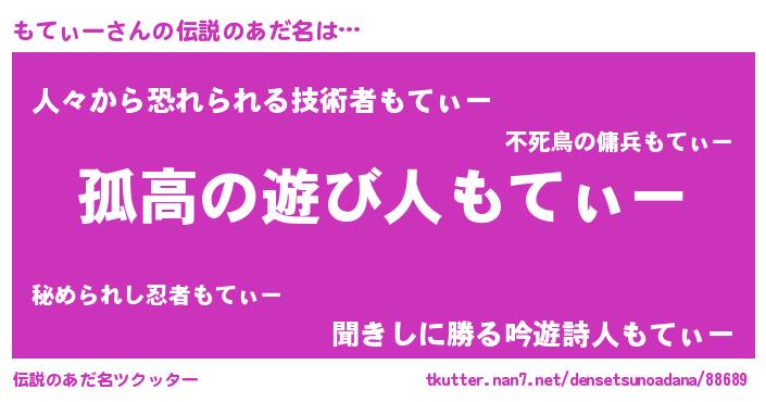 | ヒーロー風カッコイイあだ名 | 『魔戒騎士モテ』『正義の使者もてぃー』 |