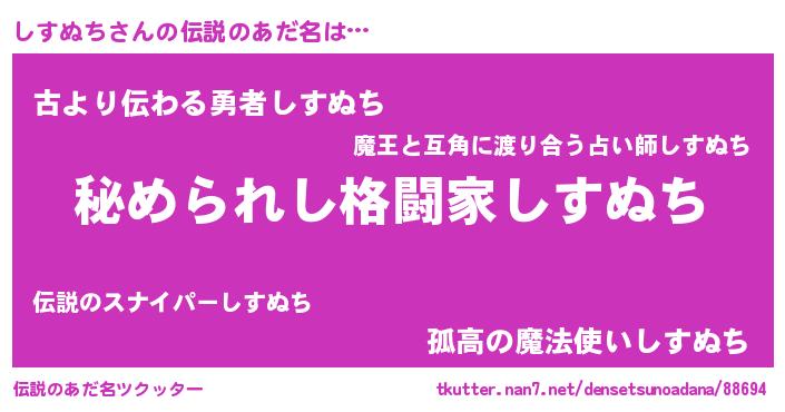 | 意味不明あだ名 | 『住所不定無職しすぬち(13歳)』 |