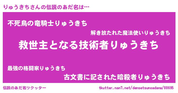 | ヒーロー風カッコイイあだ名 | 『天空の使者りゅうきち』『銀牙騎士リュ』 |