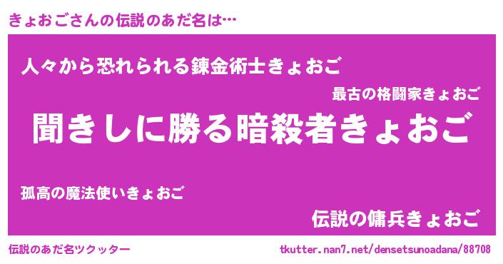| 意味不明あだ名 | 『永久保存きょおご』『自称きょおご』 |