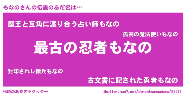 | ヒーロー風カッコイイあだ名 | 『ウルトラもなのマン』『ネオモナノ』 |