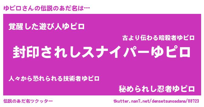 | 意味不明あだ名 | 『自称ゆピロ』『ペロリンゆピロ』 |
