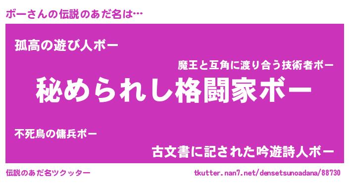 | 男性向けラノベタイトル風あだ名 | 『はたらくボーさま!』『緋弾のボー』 |