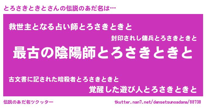 | 男性向けラノベタイトル風あだ名 | 『転生したらとろさきときとだった件』 |