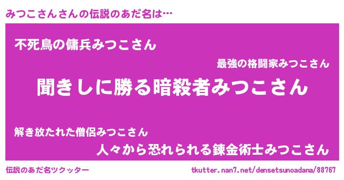 | 意味不明あだ名 | 『住所不定無職みつこさん(47歳)』 |