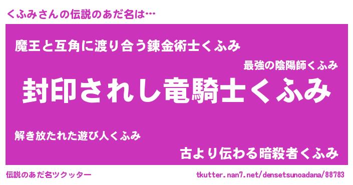 | ヒーロー風カッコイイあだ名 | 『仮面クフダー』『スーパークフミ』 |