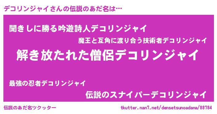| ヒーロー風カッコイイあだ名 | 『魔戒騎士デコ』『ネオデコリンジャイ』 |