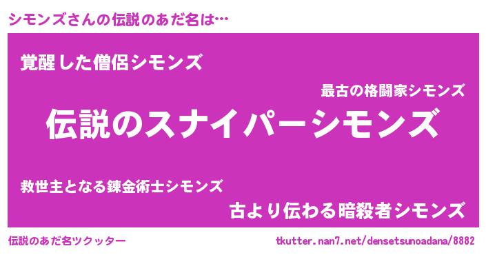 | ヒーロー風カッコイイあだ名 | 『スーパーシモンズ』『炎刃騎士シモ』 |