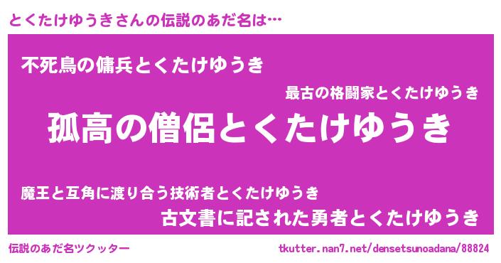 | 意味不明あだ名 | 『自称とくたけゆうき』 |
