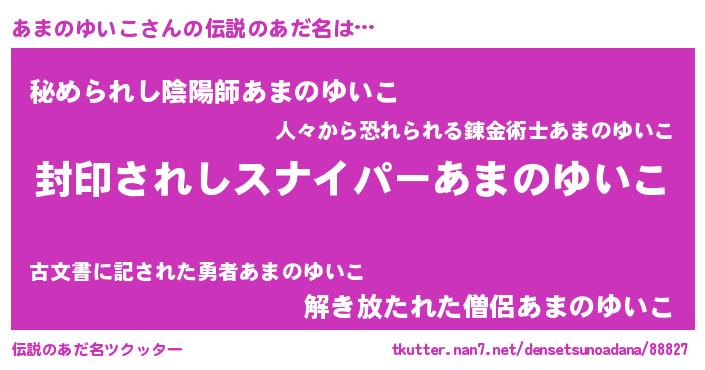 | 胡散臭い通販商品みたいなあだ名 | 『億万長者になれる霊験あらたかなお札…その名も「あまのゆいこ」』 |