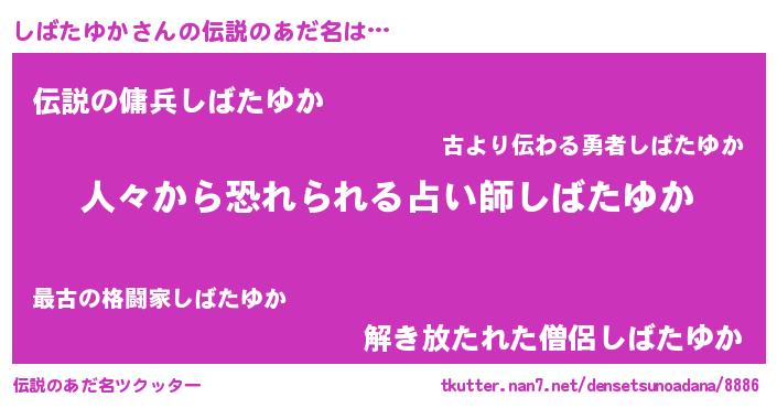 | ヒーロー風カッコイイあだ名 | 『正義の使者しばたゆか』『仮面シバダー』 |