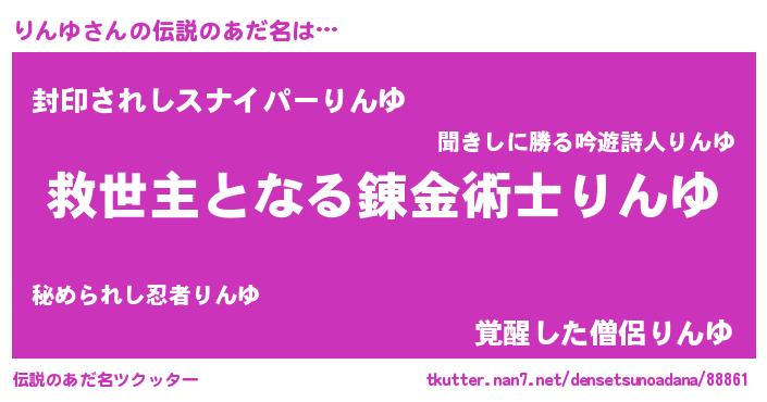 | 男性向けラノベタイトル風あだ名 | 『りんゆに滅ぼされるだけの簡単なお仕事です』 |