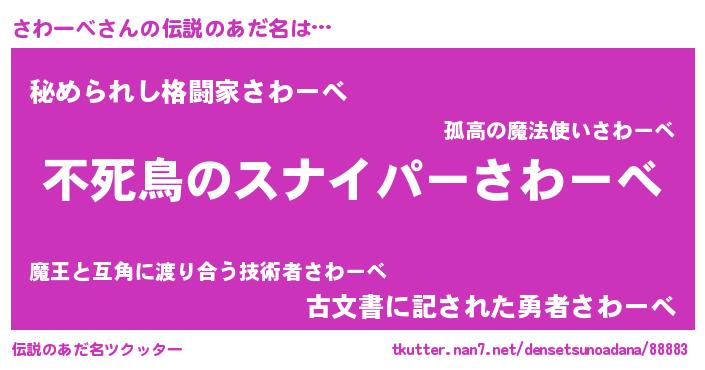 | 胡散臭い通販商品みたいなあだ名 | 『モテモテ間違いなし霊験あらたかなお札…その名も「さわーべ」』 |