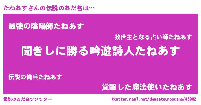| 意味不明あだ名 | 『永久保存たねあす』『自称たねあす』 |